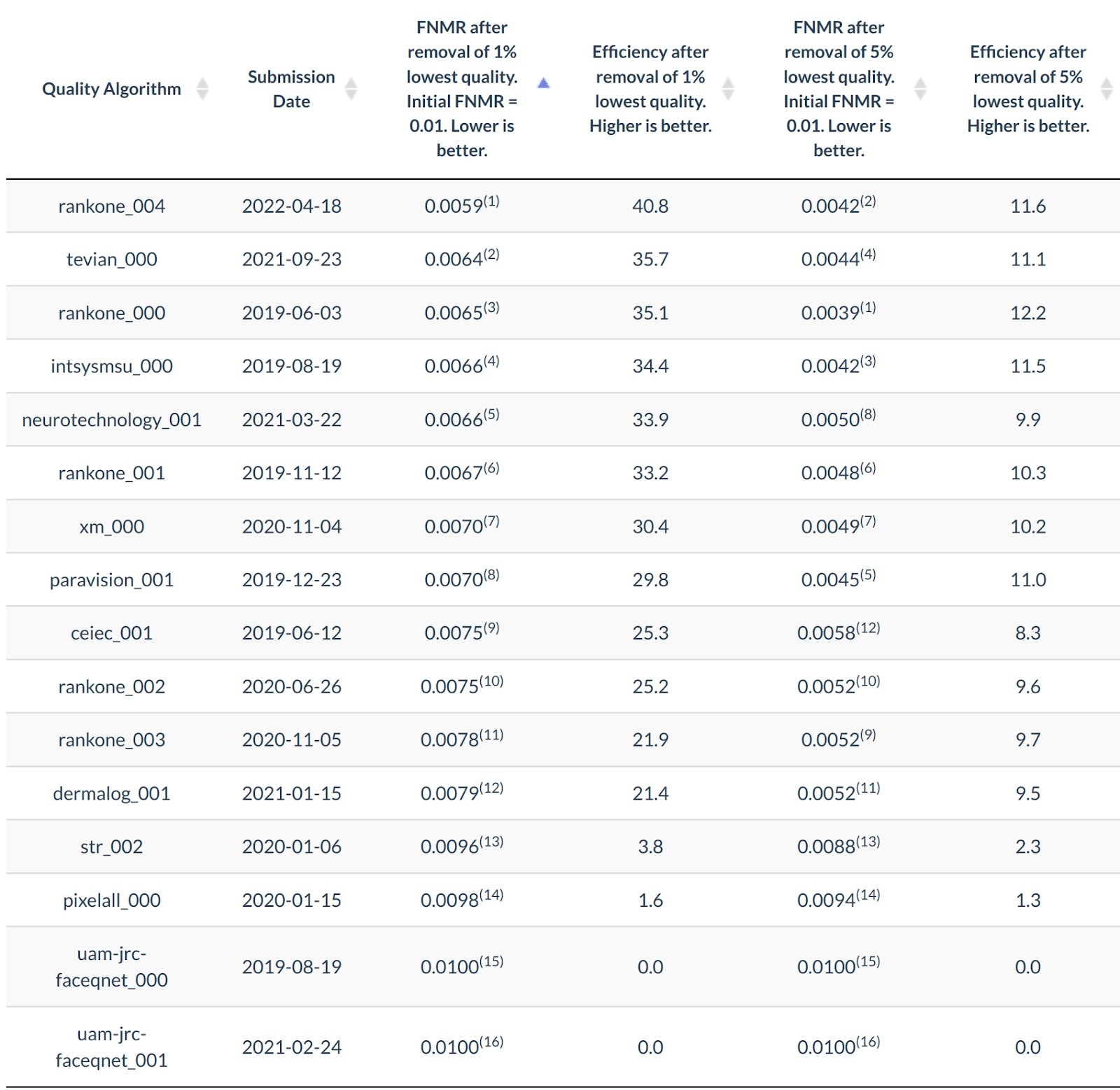 Rank One recently delivered to its customers a substantial improvement to its quality algorithm. This new quality algorithm as also submitted to NIST FRVT and the results are in: Rank One’s latest quality algorithm is #1 in the world!